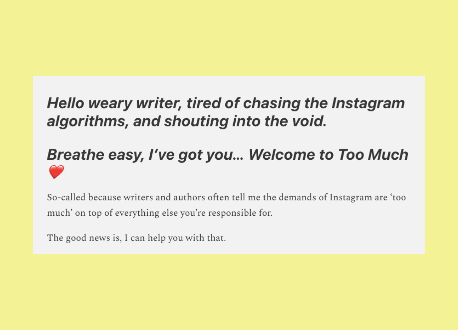 "Welcome to the corner of the internet where ambitious introverts gather to..." "This is for the creators who are tired of..."